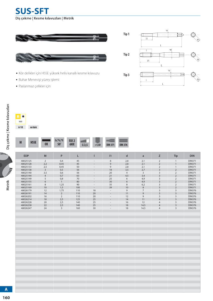 • Kör delikler için HSSE yüksek helis kanallı kesme kılavuzu