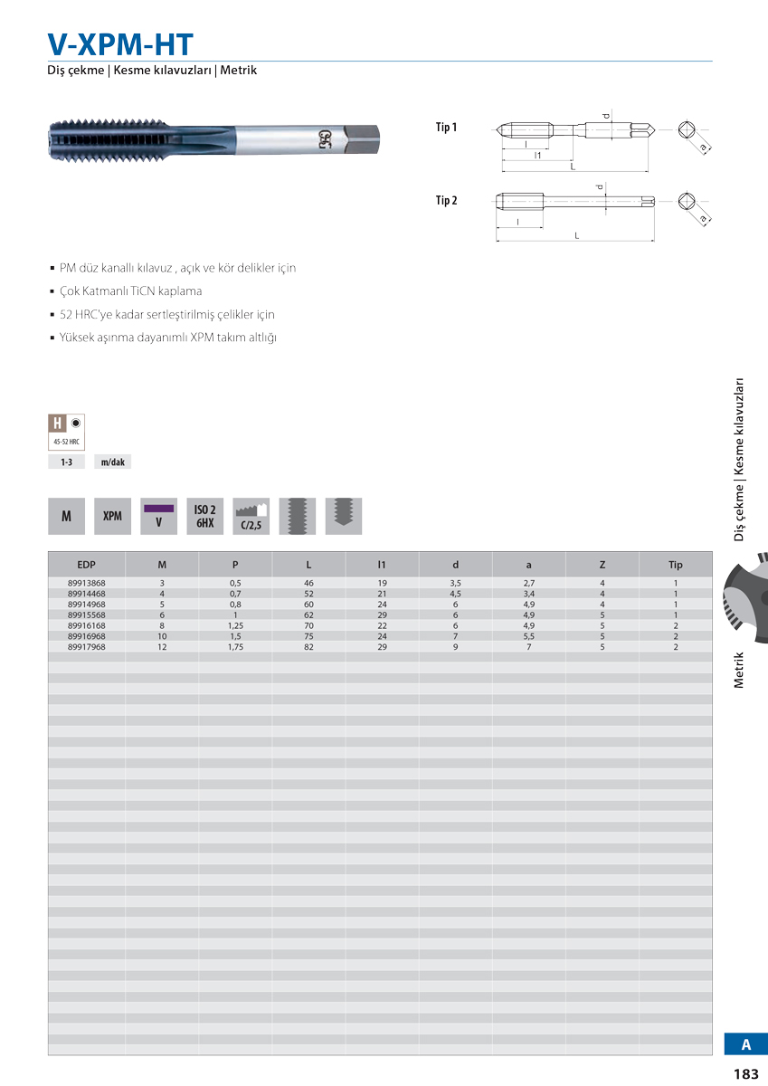 • 52 HRC’ye kadar sertleştirilmiş çelikler için
